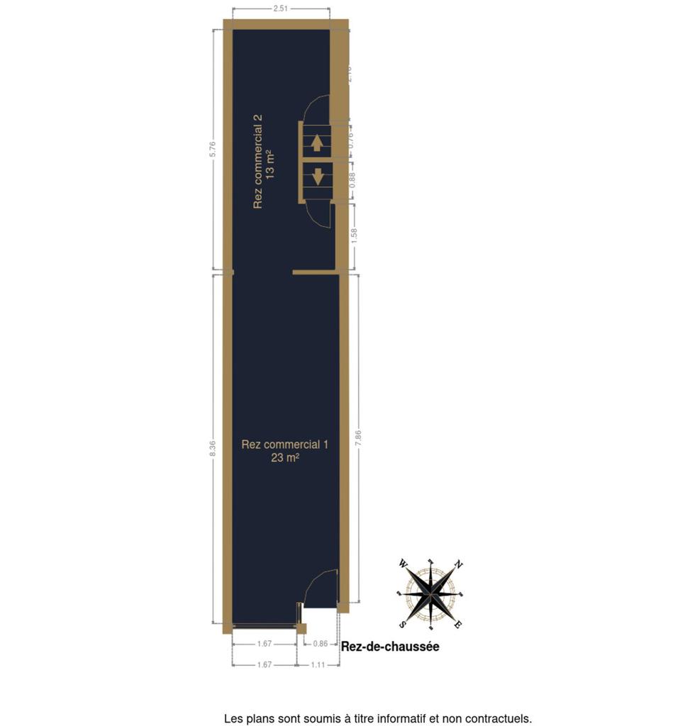- Une surface commerciale d'une 40aine de m² au rez-de-chaussée avec une vitrine de 3 mètres.