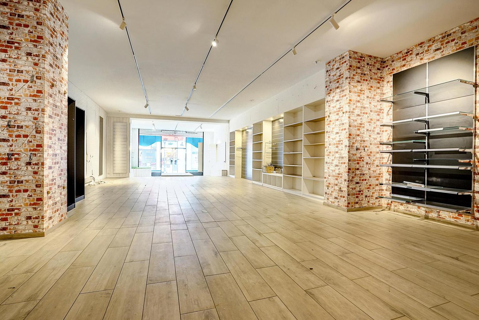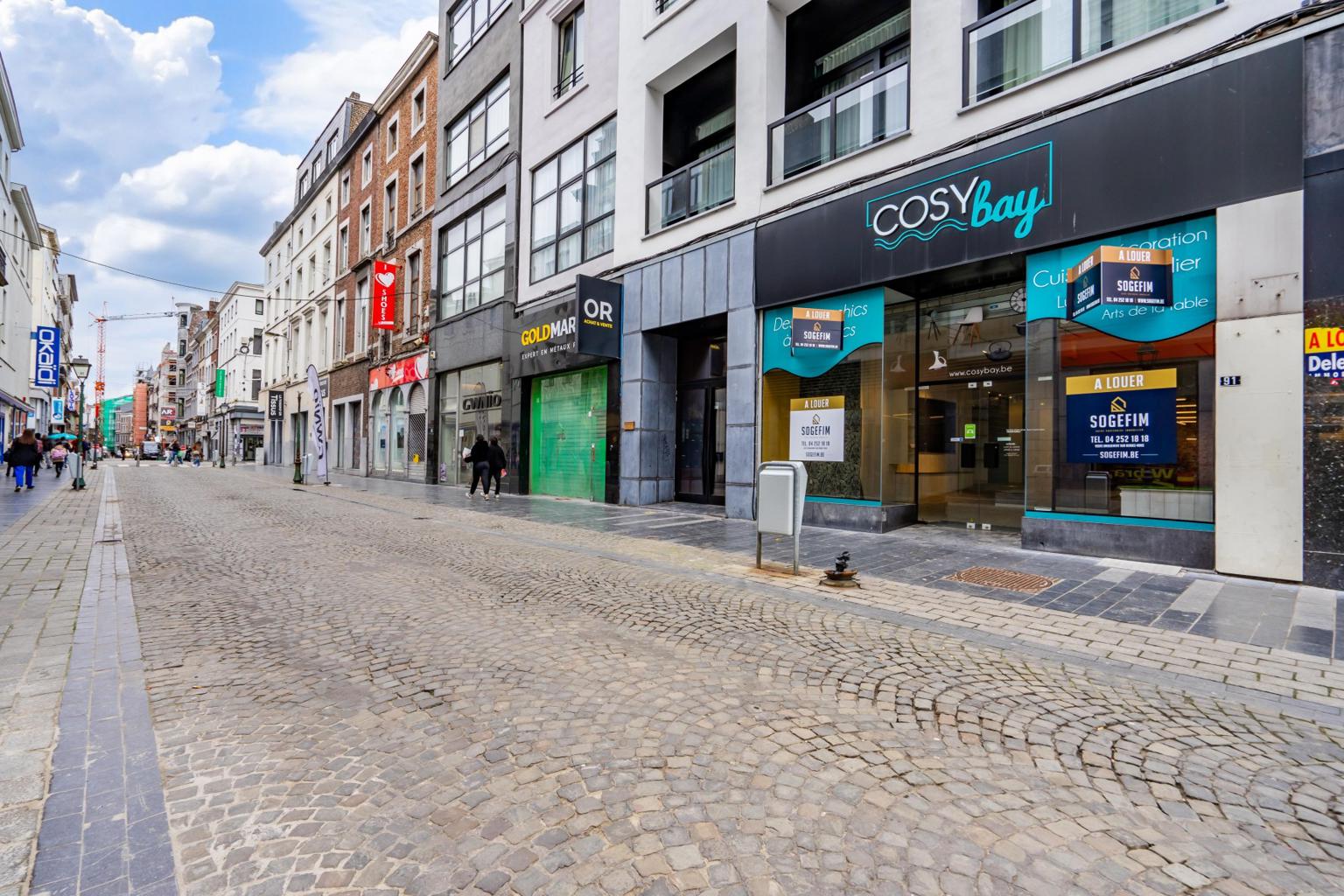 Sogefim a le plaisir de vous présenter à la location ce rez-de-chaussée commercial idéalement situé dans le piétonnier du centre-ville de Liège, à 2 pas de la Place Cathédrale et à proximités immédiates d’enseignes telles que Damart, easy clothes, wibra…Cet emplacement vous offre une largeur de façade de +/- 7 m avec 2 vitrines, une surface commerciale de +/- 195 m² actuellement divisée avec des cloisons légères en une surface show-room, une réserve, une kitchenette et une toilette.