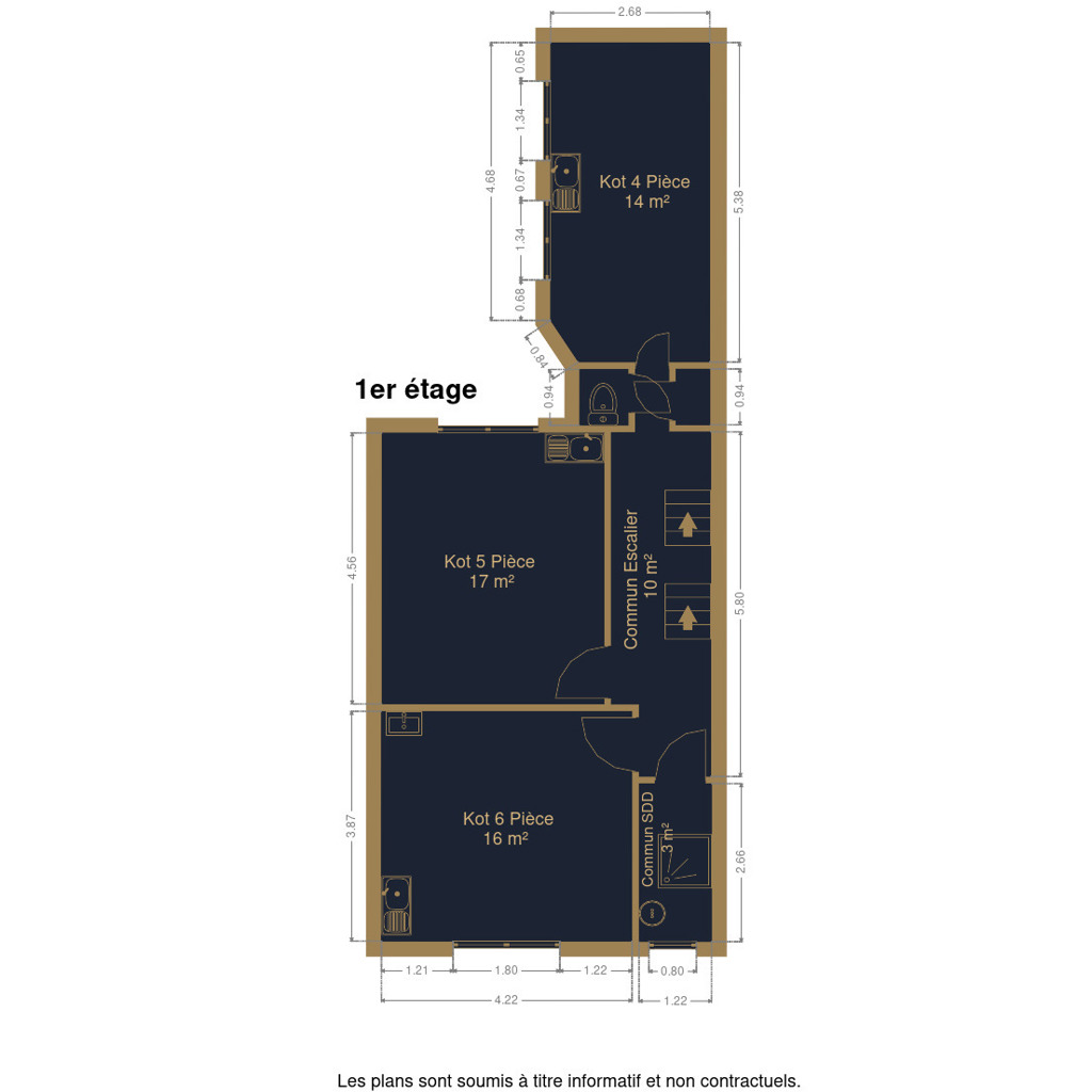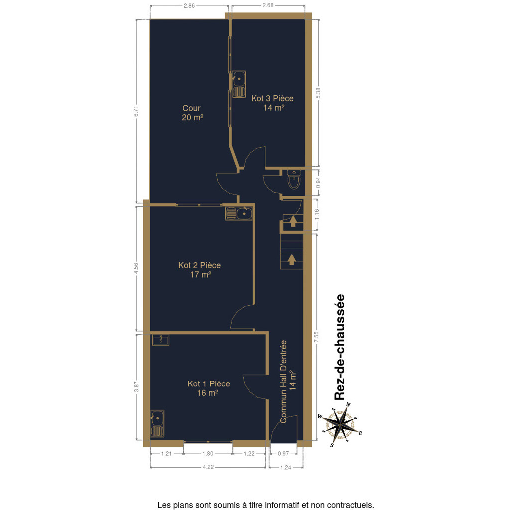 Situé dans le quartier recherché du Jardin Botanique, cet immeuble de rapport bénéficie d’une localisation stratégique, à proximité immédiate des écoles, universités et transports en commun. Il s’agit d’un bien parfaitement adapté à une clientèle étudiante et offrant une rentabilité immédiate.L’immeuble développe une surface totale de 217 m² répartie sur quatre niveaux et propose huit kots indépendants, tous équipés d’un coin cuisine. Les espaces communs sont fonctionnels et bien pensés : hall d’entrée, salle de douche, trois WC, ainsi qu’une cour arrière de 19 m².